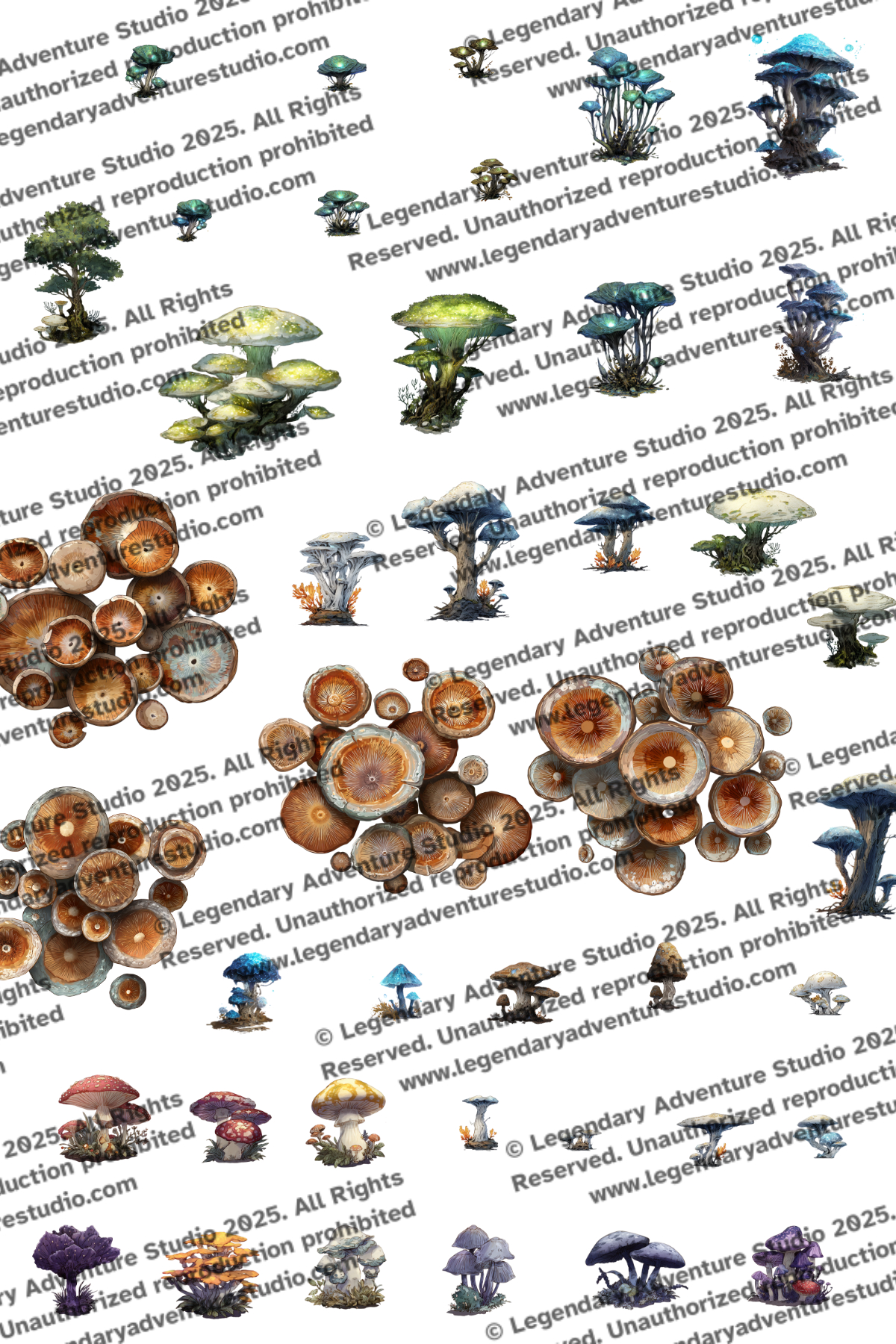 From towering caps to tiny luminescent sprouts, this pack adds magical ambiance to deep caverns, spore groves, and fungal enclaves.